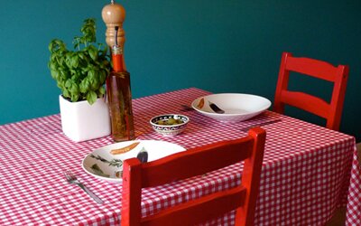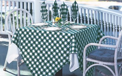 Milliken Checkpoint™ e una tela muy popular para mantelería de restaurantes italianos, pizzerías y comidas campestres.